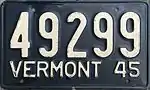 1944 | Embossed black serial on white plate; "VERMONT 44" at bottom | none | 12345 | 1 to approximately 74000 | |