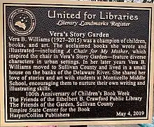 - ↑ "Literary Landmark: Vera's Story Garden – Vera B. Williams". May 24, 2019.