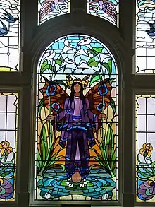 Stained glass window, the "angel of purity" in the Turkish Baths.