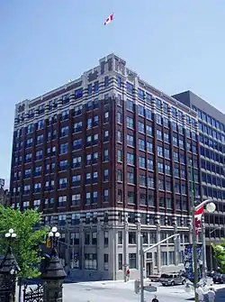The Victoria Building is an Art Deco office building in Ottawa, Ontario, Canada.[1] It is located at 140 Wellington Street, just across from the Parliament of Canada. It houses the offices of a number of parliamentarians, mostly members of the Senate of Canada. The building, designed by John Albert Ewart, was completed in 1928 by private developers, though the federal government quickly leased much of it. It has held a wide variety of tenants. It was the first home of the Embassy of France (1928-1939) and the Bank of Canada from 1935 to 1938. It also housed the Japanese legation in 1931. From 1938 to 1964 it housed the CBC and for a time was also the home of Ashbury College. The federal government took over the building in 1973 and in 2003 it was renovated.