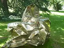 A special attraction within the collection is the bronze Articulated column by the English artist Tony Cragg (1996), which was created especially for the Viersen Sculpture Park.[3] The first sculpture was the in 1989 erected Monument consisting of Eifel basalt by the artist Erwin Heerich (1922-2004), then teaching art at the Kunstakademie Düsseldorf. Above that the artist presented the collection in 1992 with a bird bath from the same material, as well as several benches made of steel and stone, which go very well with the other artworks in the park. Other important works of the Sculpture Park are: