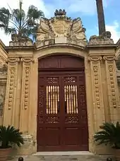 The site of Vilhena Palace has been inhabited since ancient times, and post-Punic remains have been found in the area.[1] In around the 8th century, a Byzantine fort was probably built on the site, and in the Middle Ages it developed into a castle known as the Castellu di la Chitati. The castle's inner walls were demolished in the 15th century, and the remaining part was built up as a palace by Grand Master Philippe Villiers de L'Isle-Adam in the 1530s.[2] The palace was called the Palazzo Giuratale, and it housed the civil administrative council known as the Università. The structure was damaged in the 1693 Sicily earthquake.[3]