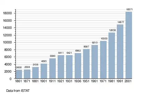 - ↑ "Popolazione Residente al 1° Gennaio 2018". Italian National Institute of Statistics. Retrieved 16 March 2019.