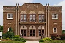 Vincennes Fortnightly Club is a historic Women's club clubhouse located at Vincennes, Knox County, Indiana. It was built in 1928, and is a two-story, Colonial Revival style brick and Indiana limestone building. The tripartite front facade features arched openings and a decorative metal railed balcony on the second floor. The dumbbell shaped building consists of a main entrance block, auditorium, and rear stage section.[2]: 5, 10