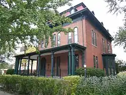 The Vincent House is a historic building located in Fort Dodge, Iowa, United States. The distinguishing features of this three-story, red brick, Second Empire house is its mansard roof and wrap-around porch.[2] Web Vincent moved his family into the house in 1879 and it remained in the Vincent family until 1969 when Anne R. Vincent died. Vincent was a businessman who made his fortune in the local gypsum industry. A ballroom was located on the third floor and its walls were composed of gypsum plaster, which was the first time it was used in the United States.[2] The house was listed on the National Register of Historic Places in 1973.[1]