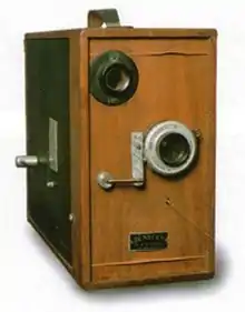 In 1924, Vincent built his first 35 mm long-roll camera which he intended to use for taking school pictures, but another photographer bought the camera from him for $100 (about $1,300 in 2012 dollars). He made a second camera, but quickly sold it also. As a result, he dropped the idea of becoming a school photographer and instead began building cameras for sale under the name VE-JA-DE Products (from his initials, V.J.D.).[8] They are the first documented mass-produced cameras specifically designed for school photography, starting a trend that has spread to high schools throughout the U.S.[2] Vincent hand built all his cameras from walnut that he selected himself. Many of the parts such as the rollers and various aluminum pieces were also handmade. One of those cameras is now in the George Eastman House (Kodak) Museum in Rochester, New York. Another camera is in the Vaughn-Applegate Collection of the Shiloh Museum of Ozark History in Springdale, Arkansas.[9] Two others are in the DigiCamHistory.Com collection. Photos of eighteen different variations of Dunker cameras may be seen on the DigiCamHistory.Com web site, 1950s page, Vincent Joseph Dunker.