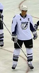 Vincent "Vinny" Lecavalier (born April 21, 1980) is a Canadian former professional ice hockey player who is currently a special advisor of hockey operations for the Montreal Canadiens.[1] Lecavalier played seventeen seasons in the National Hockey League (NHL) between 1998 and 2016. He was the captain of the Tampa Bay Lightning for the 2000–2001 season and again from 2008–2013 and spent his first 14 NHL seasons with the Tampa Bay Lightning before being bought out following the 2012–13 season and signing with the Philadelphia Flyers for $22.5 million over 5 years. He was chosen first overall by the Lightning in the 1998 NHL Entry Draft and was a member of their 2004 Stanley Cup championship team. He won the Maurice "Rocket" Richard Trophy in 2007 as the NHL's leading goal scorer. On February 10, 2018, the Tampa Bay Lightning retired his number 4 jersey.