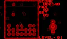 The main objective across every level is to make a determined number of linked worm pieces. The player can also use the bottom and side edges of the playfield to make linked worm pieces disappear. If the worm's pieces are linked in a certain way, a fairy will spawn to clear the bottom pieces in the playfield.[2] The game is over once any stack of worm pieces reaches the top of the playfield. The game gives a password after completing each level, but there is no dedicated screen to input them, rendering the passwords completely useless.[2][4]