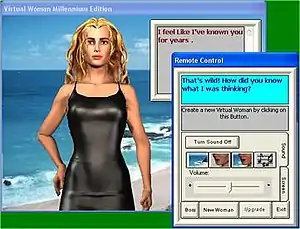 Virtual Woman is a software program that has elements of a chatbot, virtual reality, artificial intelligence, a video game, and a virtual human. It claims to be the oldest form of virtual life in existence, as it has been distributed since the late 1980s.[1] Recent releases of the program can update their intelligence by connecting online and downloading newer personalities and histories.