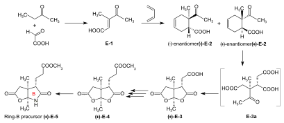 - ↑ See Syntheses of the ring-B precursor in (Show/Hide) "Synthesis of the ETH B-C-component".