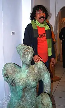 He played with lace, white paper and paintbrushes as a child, but did not discover art until he was a teenager.[3] At age fourteen, he wanted to be a musician, inspired by Carlos Santana, but says that he had to give it up for “…having clumsy hands.”[4][5] He discovered art at age fifteen, working as a delivery boy for his aunt's pharmacy in Mazatlán. There he came across a magazine cover with a reproduction of a Monet painting.[5][2] He took some classes and began by reproducing images he saw in publications.[6][7]