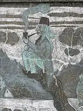 Bolotnik (Russian: болотник) is the owner of the swamp. He is often considered a relative of the vodyanoy and the leshy. There are many descriptions of him, but most often he was imagined as an old man with long green beard and his body covered in fish scales and algae. The bolotnik is dangerous, and he would pose an especially huge threat to those who play shepherd's pipe at night. In order to lure the person to the swamp, he would parody the sounds of various animals, create wandering lights and grow intoxicating plants. This spirit is often said to be a loner, although in some beliefs he has a wife, a bolotnitsa.[2]