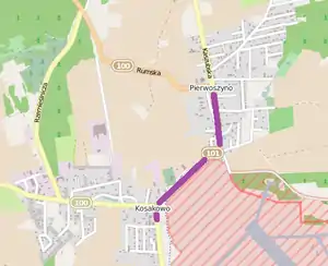 Voivodeship Road 101 (Polish: Droga wojewódzka nr 101, abbreviated DW 101) is a former voivodeship road. It ran through the Pomeranian Voivodeship from voivodeship road 100 in Pierwoszyno to Kosakowo where there is the new international airport.[1] The route was concurrent with voivodeship road 100 on its entire length.