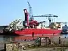 However, Valmet was not able to compete with private companies in the newbuilding market, and in 1963 a decision was made to switch focus on repairing existing ships and maintain only limited newbuilding capability on a single shipyard.[1] When demand for new ships increased considerably in the mid-1960s, the shipbuilding strategy of Valmet changed considerably.[2] As the size of new ships was expected to increase in the future, there was a danger that the state-owned shipbuilding company would not be able to compete in the lucrative newbuilding market. Since expanding the shipyard located in the middle of the capital city was deemed impossible, a decision was made to construct a completely new shipyard in Vuosaari.[1]