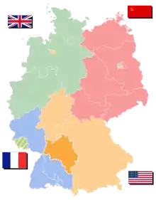 Württemberg-Baden consisted of the northern halves of the former states of Württemberg and Baden. The southern border of this part of the US-administered zone was set so that the autobahn connecting Karlsruhe and Munich (today the A8) was completely contained within the American zone. The three major subdivisions of the American zone (Greater Hesse, Bavaria and Württemberg-Baden) were declared on 19 September 1945.[1]