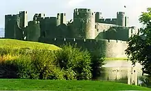 The killing of Bleddyn ap Cynfyn in 1075 led to civil war and gave the Normans an opportunity to seize lands in northern Wales. In 1081, Gruffudd ap Cynan, who had just won the throne of Gwynedd from Trahaearn ap Caradog at the Battle of Mynydd Carn, was enticed to a meeting with the Earl of Chester and Earl of Shrewsbury and promptly seized and imprisoned, leading to the seizure of much of Gwynedd by the Normans.[19] Rhys ap Tewdwr of Deheubarth was killed in 1093 in Brycheiniog, and his kingdom was seized and divided between various Norman lordships.[20] The Norman conquest of Wales appeared virtually complete.