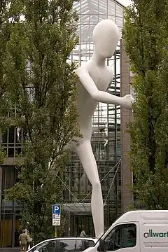 Walking Man is a 1995 sculpture by Jonathan Borofsky, standing 17 metres (56 ft) tall and weighing 16 tonnes (35,000 lb). It is located on the Leopoldstraße in Munich, next to the Munich Re business premises. It was presented to the public on 21 September 1995 by then-head of Re, Hans-Jürgen Schinzler, and then-mayor of Munich, Christian Ude.[1]