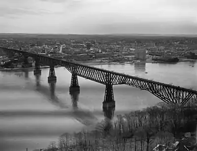 Considered an engineering marvel of the day, the bridge has seven main spans. The total length is 6,768 feet (2,063 m), including approaches, and the top of the deck is 212 feet (65 m) above water. It is a multispan cantilever truss bridge, having two river-crossing cantilever spans of 548 feet (167 m) each, one center span of 546 feet (166 m), two anchor (connecting) spans of 525 feet (160 m), two shore spans of 201 feet (61 m) each, a 2,641 feet (805 m) approach viaduct on the eastern bank and a 1,033 feet (315 m) approach viaduct on the western bank. All seven spans were built of newly available Bessemer process "mild" (between 0.16% and 0.29% carbon) steel, while the two approach viaducts were built of iron. It formed part of the most direct rail route between the industrial northeastern states and the midwestern and western states.[16]