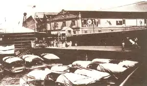 Motorboats parked at pier around 1920.