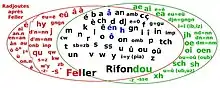 Letters used by the Feller System (on the left) and by Unified Walloon, "rifondou", (on the right)