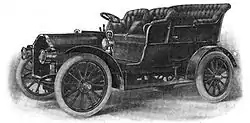 More conventional cars came in 1905 with front-mounted, water cooled inline 4-cylinder engines of 16 or 20 hp (12 or 15 kW) and chain drive. They were made until 1908. These power-plants were of proprietary design and consisted of four single cylinders mounted on a common crankcase.[2]