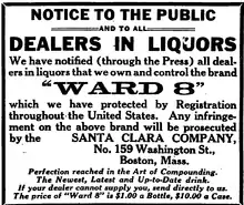 - ↑ "Notice to the public and to all dealers in liquors". The Boston Globe. 1914-12-20.