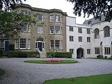 In 1897 the foundation stone of new permanent buildings was laid on the north side of the house. The first block of these buildings was opened on 1 August 1899, and they were completed by 1901.[4] They are built in the neo-Jacobean style of Doulting stone, with Bath stone dressings. Student numbers grew; in 1908 there were 40 and this later rose to 53. In 1913, after the death of Philipps, the constitution of the College was changed and one of the purposes now listed was for the actual training of missionaries. The College closed during the First World War but then re-opened and flourished. In 1927, a large extension to the south, designed by Sir Charles Nicholson, added a chapel and library.[4] The College again closed for the duration of the Second World War.