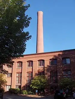 The mill site was first used for textile production in 1844, and its investors included members of the prominent Wolcott family. This complex was built in 1908 to designs by prolific mill designer Charles T. Main, and are his only known work in the state. The complex was used for textile production until 1984. From the late 19th century the firm specialized in the manufacture of heavy fabrics for the uniforms of police and military organizations.[2]