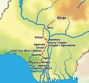 - ↑ Ojoye, Taiwo (4 July 2018). "Itakpe-Ajaokuta-Warri rail line'll begin operation in two weeks – Okheria". Punch (Nigeria).