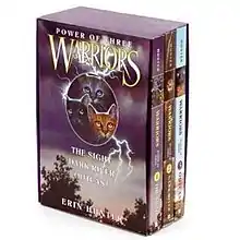 Warriors: Power of Three is the third arc in the Warriors juvenile fantasy novel series about anthropomorphic feral cats. The arc comprises six novels which were published from 2007 to 2009: The Sight, Dark River, Outcast, Eclipse, Long Shadows, and Sunrise. The novels are published by HarperCollins under the pseudonym Erin Hunter, which refers to authors Kate Cary, Cherith Baldry, Tui Sutherland and plot developer/editor Victoria Holmes. Power of Three details the experiences of protagonist of the first series Firestar's three grandchildren, initially known as Jaykit, Hollykit, and Lionkit, whom a prophecy foretells will have "the power of the stars in their paws". The arc's major themes deal with forbidden love, the concept of nature versus nurture, and characters being a mix of good and bad. Though the novels have appeared on the New York Times Bestseller List and have been nominated for several awards, none of the novels in Warriors: Power of Three have won a significant literary award.