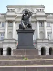 After the Załuski Library had been removed by the Russians to St. Petersburg, the Society's library was the greatest public library in former Poland.[2] Its collection was partially confiscated by the Russians in 1832,[3] and later parts of it were destroyed by the Nazis during the Second World War.[6] It had its own journal, the Annals of the Warsaw Society of Friends of Learning (Roczniki Warszawskiego Towarzystwa Przyjaciół Nauk, vols. 1-21, published 1802–30),[7] and the Warsaw Chronicle (Pamiętnik Warszawski), a serious monthly modeled on publications such as the Edinburgh Review.[8]