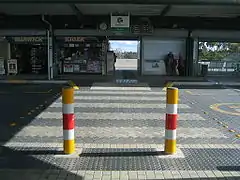 The original bus station was connected to the adjoining Mitchell Freeway by a two-lane on/off ramp in both the north and south directions, constructed in the middle of the Mitchell Freeway reserve. It was constructed to service freeway express buses from Perth, services which were subsequently phased out with the opening of the railway station.[3] The on/off ramp was connected to the bus station via a bridge spanning the southbound lanes of the Freeway. The bus station was positioned on land north of the connecting bridge between the Freeway East Embankment (controlled by the Main Roads Department), Hawker Avenue, land occupied by the Warwick chapel of the Church of Jesus Christ of Latter-day Saints, and adjoining residential housing.[2]