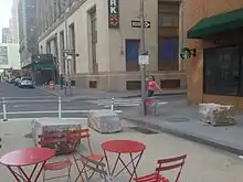 - ↑ Jessica Terrell. "City to Turn Drab Stretch of Washington into Pedestrian Plaza". Tribeca Trib. Retrieved June 17, 2014.