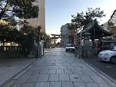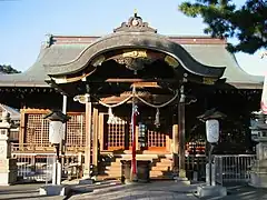 It is colloquially called Sea Shrine (海神社, Umi Jinja) due to that being a more common reading of the characters.[2] It is also read as Kai Shrine or called Tarumi Shrine.[3]:7