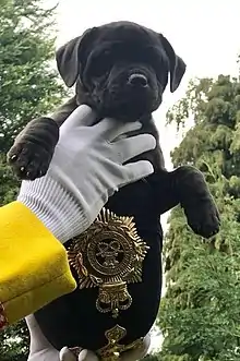 In 2016 Watchman was entered into the "Westminster Dog of the Year" competition by Staffordshire MPs It was the first time a military mascot has been entered into the competition.[11] The MPs organised a public campaign to help Watchman V win the public vote element of the competition. The final was held in Victoria Tower Gardens on Thursday 8 September. Sgt Watchman V won the public vote in the competition and was crowned the 2016 competitions "paw-blic" vote winner.[12][13]