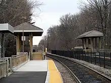 Wedgemere station is an MBTA Commuter Rail station in the southeast portion of Winchester, Massachusetts, served by the Lowell Line. The station has two side platforms serving the line's two elevated tracks. The 1957-built station building, largely unused, is adjacent to the inbound platform. After several years of work, the station was made fully accessible in February 2013.