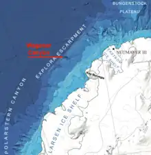 Wegener Canyon (70°45′S 14°0′W / 70.750°S 14.000°W) is a submarine canyon named for Alfred Wegener. It is located between Kap Norvegia and the Explora Escarpment as a feature for sediment transport at the Antarctic continental margin. The Canyon was mapped during various expeditions of the German research vessel RV Polarstern with a swath sonar system. The name was proposed by Hans Werner Schenke, Alfred Wegener Institute for Polar and Marine Research, Bremerhaven, Germany. Name approved 7/89 (ACUF 233).