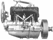 The first car, Welch Tourist, had some innovations.[1] The steering column telescoped for the driver, and an unusual two-speed transmission with all gears always in mesh was incorporated. Multiple-disc clutches within the transmission were used to select that gear that was to give the power to stop the grinding of the gears on shifting. The Welch two-cylinder vertical engine may probably be the first to use a spherical combustion chamber.