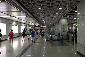 Wenchong station (Chinese: 文冲站), formerly Wenyuan station (文圆站) during planning and construction,[1] is a station and the former terminus of Line 5 of the Guangzhou Metro.[2] It is located under the junction of Dashadi Donglu (大沙地东路) and Shihua Lu (石化路), in the Huangpu District.[3][4] It opened in December 2009.[5] On 28 December 2023, Line 5 was extended from Wenchong to Huangpu New Port.[6]