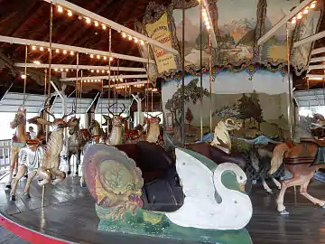 Weona Park Carousel, also known as Dentzel Stationary Menagerie Carousel, is a historic carousel located at Pen Argyl, Northampton County, Pennsylvania. The carousel and its pavilion were built in 1923. The carousel is housed in a wooden, one story, pavilion measuring 20 feet high at center and 80 feet in diameter, with 24 sections each 10 feet 6 inches wide. The carousel has 44 animals and 2 sleighs standing three abreast. They were originally hand carved and painted in the 1890s, c. 1905, and c. 1917. The carousel has a Wurlitzer organ, opus 146. It was constructed by the Dentzel Carousel Company of Philadelphia, Pennsylvania.[2]