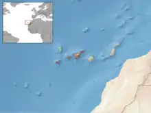 C. viridianus is found on the following Canary Islands: Tenerife, El Hierro, Roque de Garachico, and Roque de Agna.