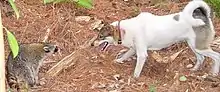 The West Siberian Laika or WSL, is a breed of spitz–type hunting dog. Russian publications indicate that the term West Siberian Laika loosely applied to hunting dogs originating with the Mansi and Khanty people in Ural and West Siberia, but there were no standards or registrations of WSL as such until 1930. Then WWII disrupted it for a while, but systematic breeding with registrations resumed after the war ended, in 1946. This was the time the breed began taking modern shape. Before that hunters only knew of Mansi Laika and Khanty Laika. In early 1960 many hunters in Ural still preferred the term Mansi Laika, when speaking of West Siberian Laika.[1] In Russian language, the term Laika originated from the word layat that means to bark. The word Laika simply means barker. Any hunting Laika is a bark pointer (pointing at animal of interest by barking and staying with the animal[2] ). It is a versatile dog depending on use and environment, but in certain parts of the country they have become more specialized.[3]