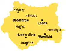 2011 map of the West Yorkshire Built-up Area, showing subdivisions