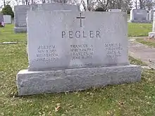 Pegler died age 74 on June 24, 1969, in Tucson, Arizona of stomach cancer.[5] He is interred in the Cemetery of the Gate of Heaven in Hawthorne, New York.[22]