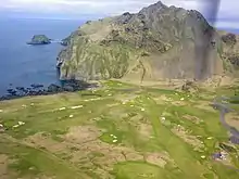 The Westman Island Golf Club is a golf club located on the Westman Islands (Vestmannaeyjar in Icelandic), on the island of Heimaey off the southern coast of Iceland. The club was established in 1938[1] as a nine-hole course and is the third oldest golf club in Iceland.[2] The course was expanded to 18 holes in the early 1990s by Hannes Thorsteinsson. It is the southernmost golf course in Iceland[3] and is located in between an extinct volcano and the Atlantic Ocean.[2]