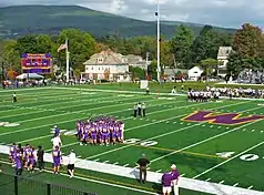 Weston Field Athletic Complex is a Williams College facility and home of the Williams Ephs football team in Williamstown, Massachusetts, United States. Although primarily used for American football, the complex also hosts the home fields for the Williams College track & field, lacrosse and field hockey programs. Renovations completed in 2014[1] include artificial turf surfaces, a new grandstand, an addition for field hockey, a new track, lighting for the fields and a large support building. Weston Field biennially hosts the Williams-Amherst football game, known as The Biggest Little Game in America, the most-played Division III football rivalry game and the only Division III game to have hosted College GameDay.