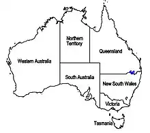 | Known range of Westringia parvifolia (in blue) | |