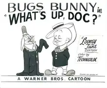 What's Up, Doc? is a Looney Tunes cartoon film directed by Robert McKimson and produced by Warner Bros. Cartoons. It was released by Warner Bros. Pictures[1] in 1950 to celebrate Bugs Bunny's 10th birthday that year, in which he recounts his life story to a reporter from the "Disassociated Press".[2] Bugs talks about his birth, his rise to fame, the slow years, and how famous Vaudeville performer Elmer Fudd chooses him to be part of his act. Eventually the duo comes upon their classic formula of Hunter vs. Hare. The short also was the first (since The Unruly Hare) to use the title card music which would continue to be used in Bugs Bunny's cartoons and in most modern Looney Tunes series (such as being an end credits theme for The Looney Tunes Show and Looney Tunes Cartoons). Arthur Q. Bryan, Dave Barry and The Sportsmen Quartet performed voice works but were not credited.[3]