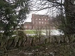 Whirley Hall is a country house standing to the north of the village of Henbury, Cheshire, England. The house dates from about 1670.[1] Additions and alterations were made during the 18th century and in the 1950s, when the house was restored and wings were added at the sides.[2] The house is constructed in brick with buff sandstone dressings, and has a Kerridge stone-slate roof with stone ridges. It has three storeys and symmetrical five-bay front. Between the storeys, and above the top storey, are brick bands. The lower two storeys contain 20th-century wooden-framed mullioned and transomed windows. In the top storey are two-light casement windows. Above these are two shaped gables, each surmounted by an obelisk finial, and containing an elliptical window. There are single-storey, two-bay extensions on each side of the house.[1] In the roof of the house is a stone inscribed with the date 1599, which is considered to have been removed from an earlier timber-framed house.[2] The house is recorded in the National Heritage List for England as a designated Grade II* listed building.[1] The gate pier in front of the house is a Grade II listed building.[3]