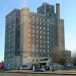 William Byrd Hotel is a historic hotel building located in Richmond, Virginia. It was built in 1925, and is an 11-story, Classical Revival style building consisting of a base, shaft and capital. It is a steel frame building clad in limestone, buff brick, and with terra cotta decorative elements. The building is topped by a three-story penthouse with a one-story addition. The hotel ceased operation in the 1980s, and the building was renovated into apartments in 1996.[3] Currently, the William Byrd Apartments are owned by Project: Homes, a regional nonprofit dedicated to providing housing for low-income seniors.[4]
